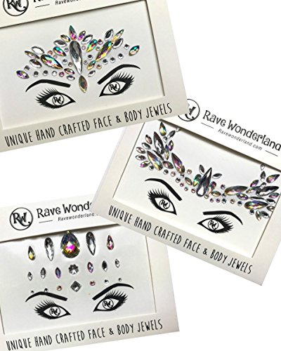Rave Wonderland Festival Face Jewels Rhinestone Adhesive 3-Pack Bundle