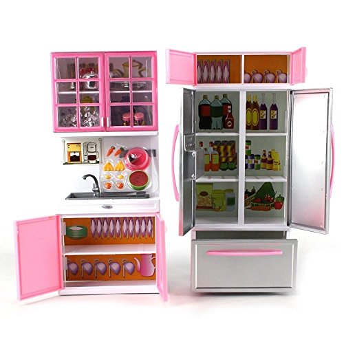 -. Feature : Pink is a girl 's paradise, very cute and romantic; / This kitchen toy is a modern home model, advanced and fun; / This kitchen accessories are many, there are refrigerators, cupboards and so on / This toy can fill the children's rich entertainment life / Christmas is coming, the gift suitable for the children
