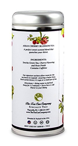 -. Binding : Misc. -. Brand : The Tea Can Company -. EAN : 0602003122125 -. Feature : 10 Premium Pyramid Tea Sachets / Brews 20-30 Cups (depending on strength) / Blended and Packed in the USA / Captures the essence of sP.R.Ingtime with the bright flavor of cherry and the delicate scent of rose / Gourmet, quality taste of loose leaf tea with the ease and convenience of a tea bag. -. IsAdultProduct : 0 -. Label : The Tea Can Company -. Manufacturer : The Tea Can Company -. NumberOfItems : 1 -. PackageQuantity : 1 -. ProductGroup : Grocery -. ProductTypeName : GROCERY -. Publisher : The Tea Can Company -. Studio : The Tea Can Company -. Title : Asian Cherry Blossom Tea -. UPC : 602003122125