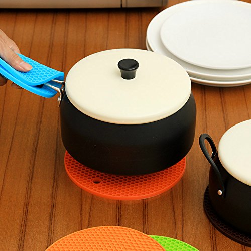 Studio : Kingree Intl Publisher : Kingree Intl Binding : Kitchen Product Description Features: FDA-approved food-grade Silicone; Super Durable, Strong, Flexible,Soft Feeling and easy to clean. Stain and odor resistant. Very novelty design ,perfect Home Kitchen Dector,can easily attch to vitrolite or smooth glass using some water in the back of the matt. Non-slip texture keeps your grip firmly, Heat resistant to 446¡a F Lifetime usage. Dishwasher safe Suitable for kitchen table mats, bowls mat, dish mats, pot holders, coasters, table mats, etc. Can also decorate the kitchen wall, kitchen table.Add colors and fun to your kitchen.