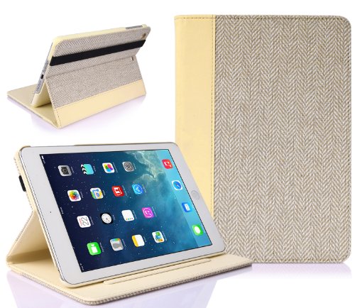 -. Feature : Made of premium synthetic leather; soft interior material provides a good protection of Apple iPad Air / Premium hard-shell case having precise cutouts for your device; Full access to all ports and buttons / Adjustable stand with multi-viewing angles; Perfect for video-chatting and movie-watching / High-grade elastic strap holds the lid open and closed / Support Auto Wake/Sleep Function; Slim fit design; Business Card Holder; Multiple Color Options