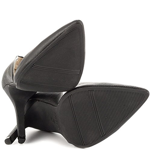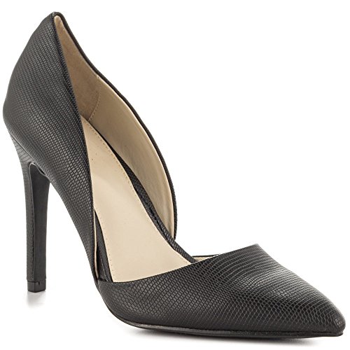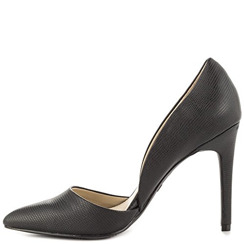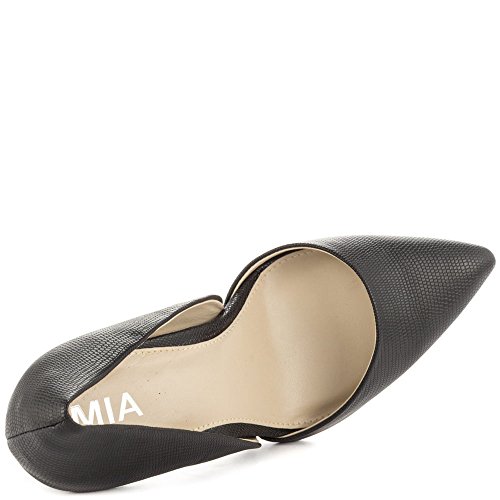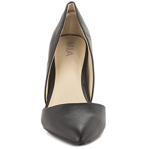 You'll feel simply mahveelouuss in the Margo by MIA. This sophisticated black pump is made with a synthetic lizard stamped upper and low cut sides. This pointed toe silhouette is completed by a 4 1/2 inch heel.Feature