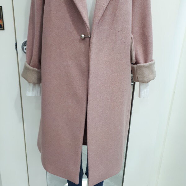 캐시미어가 함유된 고급스럽고 멋스런 슬릿포켓 핸드메이드코트입니다색감도 잔잔한 핑크로 따뜻하고 포근한느낌의 아주 단정하고 깔끔한 아이템입니다주머니가 포인트인 코트로 예뻐게입으보세요