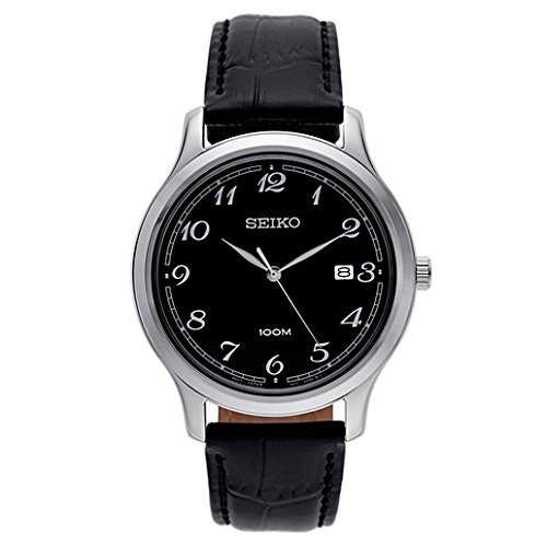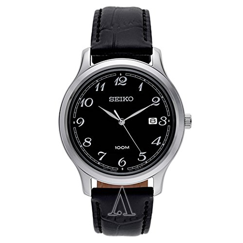 -. Title : Seiko Men's Quartz Stainless Steel and Leather Dress Watch, Color:Black (Model: SUR189)