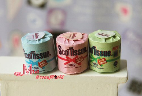 -. Feature : Material: Paper / Measurement: Height 1.2cm (0.47'') / Include: Toilet paper set 3PCS / Applicable for: 1/12 dollhouse / Please Note: Not edible, keep it away from infants too young