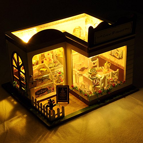 -. Feature : All furnitures and things shown in the pictures are included. With Dust Proof Cover / Color Instruction.Each steps has pictures to show you how to assemble. / DIY house is the miniature of real house, All the materials are almost the same as real house so cute and beautiful / 1:24 scale, Finished Product Size: 9*7.5*7.5(Inches) / It's very romantic to send it to friends, lover, family, kids... Means more to make it by yourself!