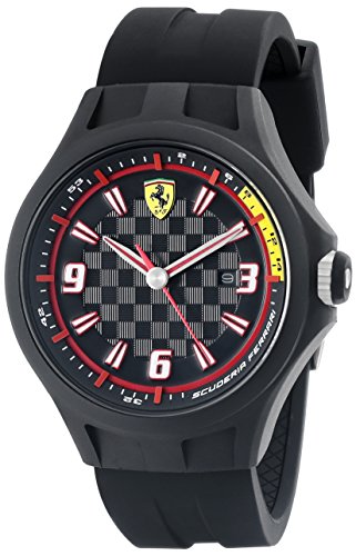 -. Binding : Watch -. Brand : Ferrari -. Color : Black -. Department : mens -. EAN : 0885997056960 -. Feature : Round watch featuring checkered dial and date window at 3 o'clock / 44 mm plastic case with mineral dial window / Quartz movement with analog display / Silicone band with buckle closure / Water resistant to 50 m (165 ft) -. Label : Ferrari -. Manufacturer : Ferrari -. Model : 0830005 -. MPN : 0830005 -. PackageQuantity : 1 -. PartNumber : 0830005 -. ProductGroup : Watch -. ProductTypeName : WATCH -. Publisher : Ferrari -. Size : One Size -. Studio : Ferrari -. Title : Ferrari Men's 0830005 Pit Crew Black Watch -. UPC : 885997056960