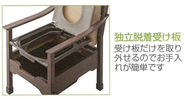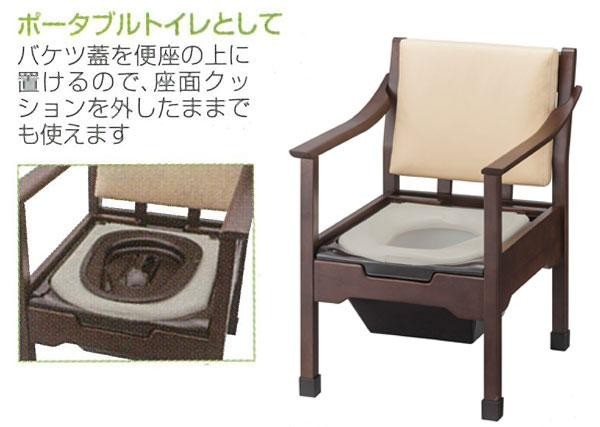 ポータブルトイレに見えないデザインで、来客時も気になりません。軽量でちょっとした移動も楽です。節水型バケツや手入れの簡単な受け板など、ポータブルトイレとしての機能も充実しています。 |
