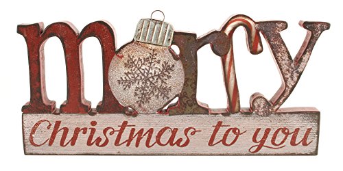 Merry Christmas to You 6 x 12.5 inch Wood and Tin Table Top Sign Plaque