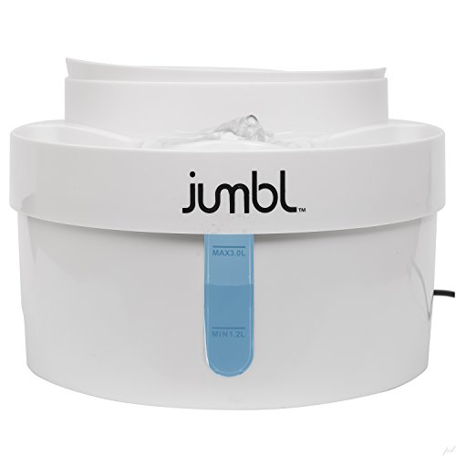 -. Binding : Misc. -. Brand : Jumbl -. Color : White -. EAN : 0840102109337 -. Feature : Holds 3 Liters (12.68 Cups) and Cycles Continuously to Encourage Pets to Drink / Features an Efficient Noise-Free Water Pump with a Built-in White Nightlight / Activated Carbon Filter Removes Impurities From the Water with Every Cycle / Removable Food Bowl Holds 800ml (3.4 Cups) and Doubles as Food Scoop / Disassembles in Seconds for Easy Cleaning; Most Parts Are Dishwasher-Safe -. Label : Jumbl -. Manufacturer : Jumbl -. Model : PTFNTNWT -. MPN : PTFNTNWT -. PackageQuantity : 1 -. PartNumber : PTFNTNWT -. ProductGroup : Pet Products -. ProductTypeName : PET_SUPPLIES -. Publisher : Jumbl -. Size : 12.5L X 8.6W X 6.02H -. Studio : Jumbl -. Title : Cat Dog FOUNTAIN Filtered Water Pet Feeder with Removable Food Bowl and Built-In Safety Light Super Quiet Operation - Holds Up To 3 Liters of Water - BPA Free - White - 1 Year Warranty -. UPC : 840102109337