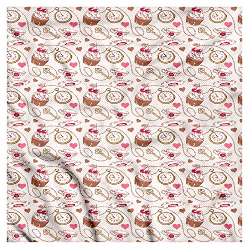 (Lunarable)/Accessories/Cold Weather Accessories/DIRECT FROM USA/Clock Bandana by Lunarable, Polka Dotted Background with Clock Cherry Cupcake Cup of Tea and Ch...