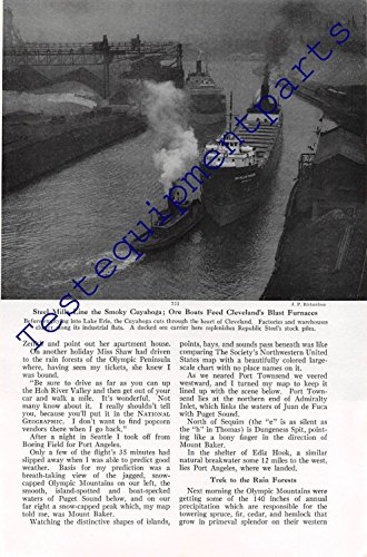 -. Feature : Great condition professionally cut and handpicked form vintage magazine P.R.Int ad / National geographic 1951 steel mills line the smoky cuyahoga; ore boats feed cleveland's blast furnaces / 1951