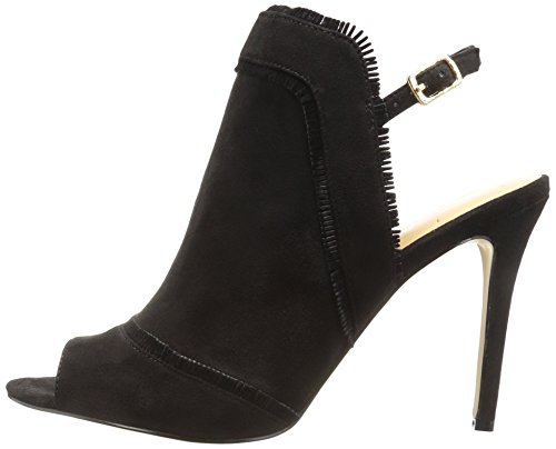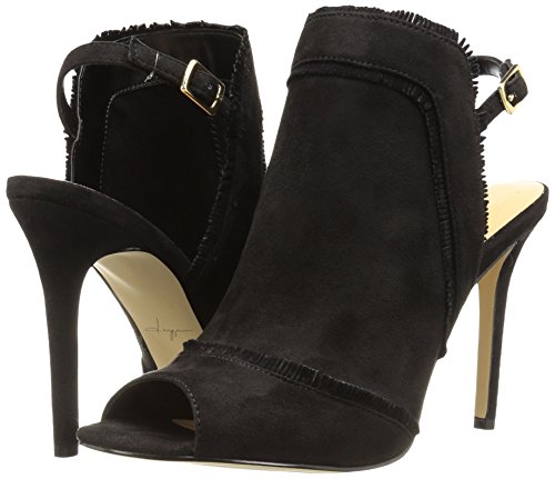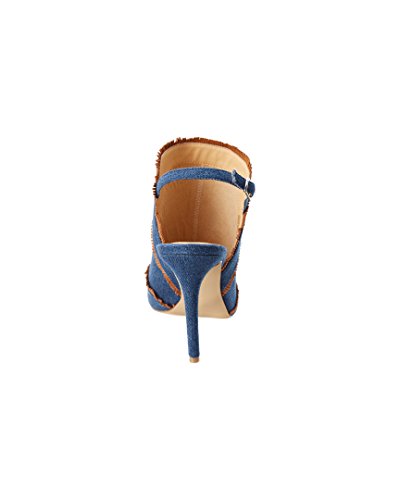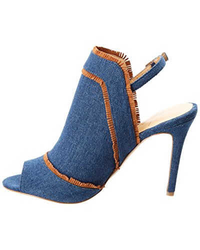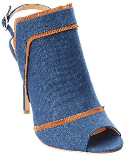 Product DescriptionMinimal fringe detail on peep toe mule with ankle strap0