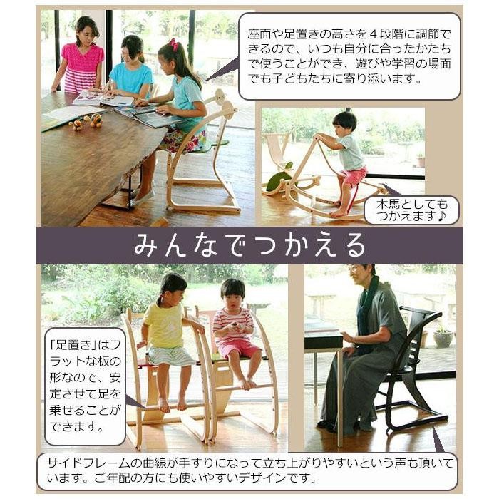 | 座面と足置きの高さを4段階に調整できるので、体の大きさやテーブルの高さに合わせて、子供から大人まで使うことができる椅子です。Bambini本体にbaby setを取り付ければ、赤ちゃんも安定した姿勢で座れる椅子になります。更に、本体を前に倒すと木馬として遊べます。 |