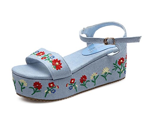 Upper material: denim Sole Material: Rubber Style: Europe and the United States Toe shape: open toe Heel height:7.5cm Heel shape: slope heel Popular elements: waterproof table, belt decoration, belt buckle, pine with, slope with, flowers, hollow, fight color, other Wear style: buckle Function: wear, increase, waterproof, breathable, other Processing methods: matte skin Style: fashion sandals Pattern: fight color Soles craft: viscose shoes Inside Material: Cortex Upper height: low help After the style: after the empty Side style: side empty Color: black, apricot, light blue Size: 35,36,37,38,39,40 0 |