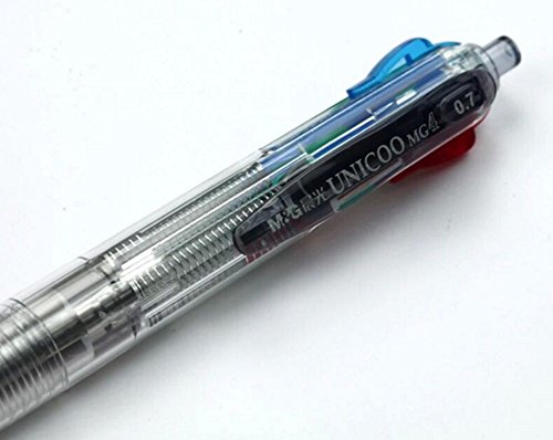 -. Feature : 4-color gel ballpoint pen: black, red, blue and green / Ballpoint pen core replacement: JK-0.7 core / Form-fitting rubber grip for writing comfort / prevent criminal check washing and other document alteration / Features M&G Super Ink- specially-formulated to become trapped in paper, helping