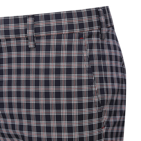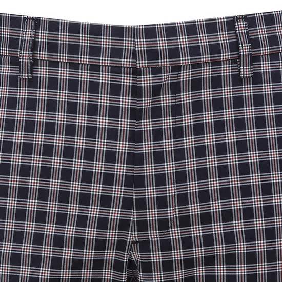 - 컬러 체크 텍스쳐 디자인의 세련된 남성 팬츠.