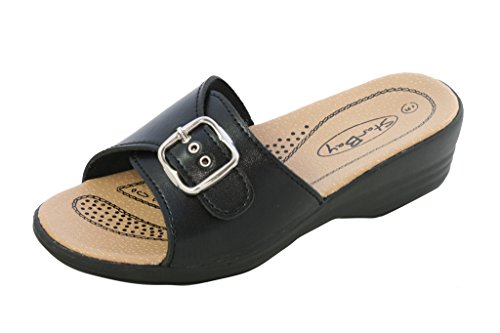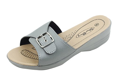 Product DescriptionThese stylish low wedge sandals have a 1.5 Inch wedge, a artificial leather upper and footbed and are very comfortable to wear.0