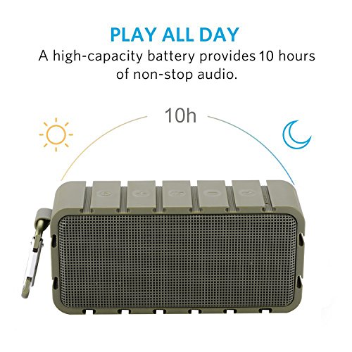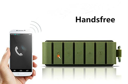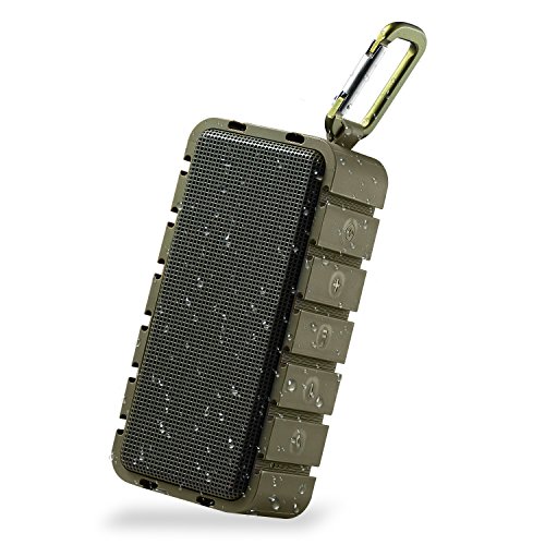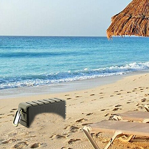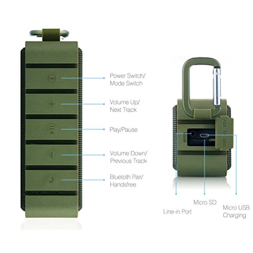 -. Feature : ✔Superior Sound Quality: Enjoy crisp, energetic sound with impressive volume, powered by 2 x 3W stereo drivers with remarkable frequency response. Sublime bass is delivered by dual passive subwoofers. / ✔Bluetooth 4.0 Technology: Stable transmitting and high Compatibility, compatible with all Bluetooth-enabled devices. Quick pairing through Bluetooth with iPhone, iPad Mini, iPad 4/3/2, iPod, Blackberry, Nexus, Samsung and other popular smartphones. Plays all Audio devices through 3.5mm Aux in Jack. / ✔Incredible Battery Performance: 10-hour playtime from the built-in, high-capacity 2200mAh lithium-ion battery keeps your music playing all day, non-stop. Playtime varies according to volume level and audio content. / ✔IPX6 Waterproof: What could be more fun than bring a water-resistant and anti-shock wireless speaker to a party at the beach or pool? Rated IPX6 for 100% protection against Dust and Water resistance. / ✔Mini&Portable: Don't leave your music behind. Enjoy wireless freedom with this little speaker. Weighing in at just 12.4ounce, it's small and light enough to tuck into your bag. It has a hook that lets you place it almost anywhere. Perfect for a long time use of most outdoor activities includes go for golf, a trip, get together for a picnic time and so on.