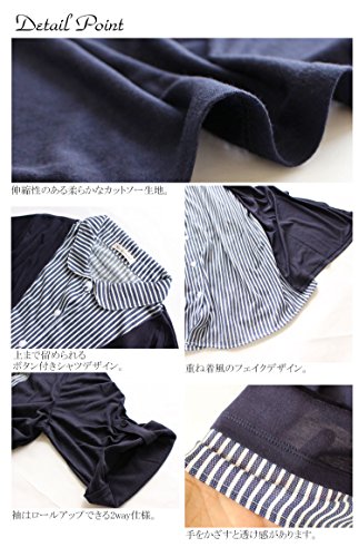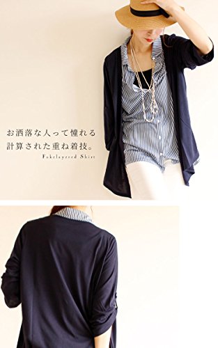 -. Title : (Goldjapan)ゴールドジャパン 大きいサイズ 大きいサイズ レディース 重ね着風 ストライプ シャツ トップス