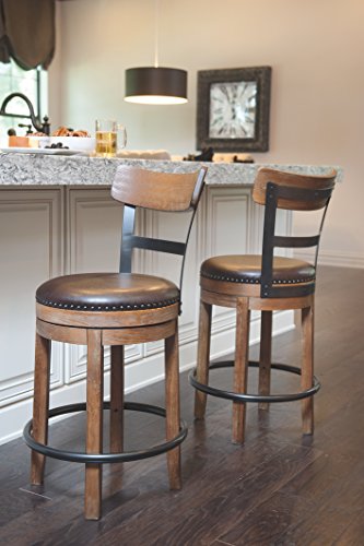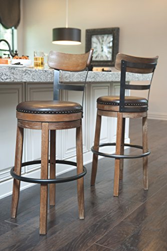 -. Title : Ashley Furniture Signature Design - Pinnadel Swivel Barstool - Brown
