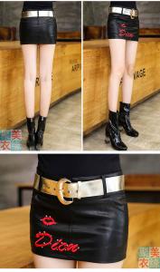 タイトスカート マイクロミニ 刺繍 ゴールドベルト ベルトつき ミニ丈 ミニスカート レザー
