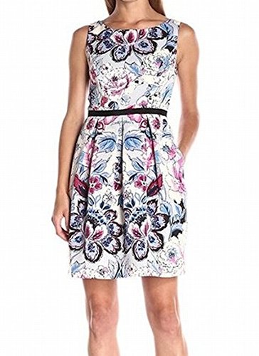 Product DescriptionMoving floral printed faille fit and flare with box pleated skirt and grosgrain ribbon waist0