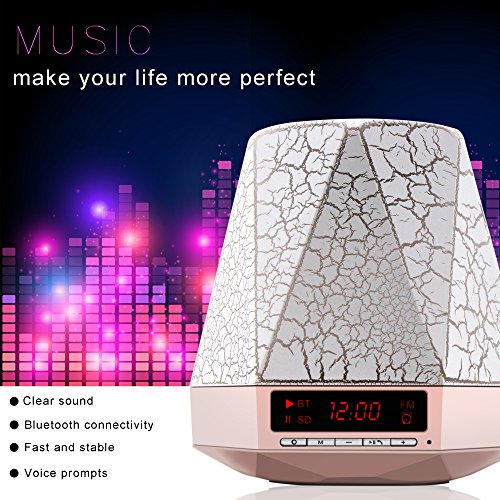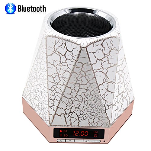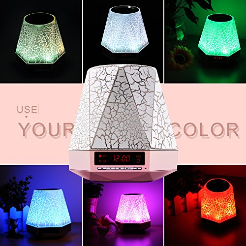 - BLUETOOTH SPEAKER + LED TABLE LAMP + ALARM CLOCK + MP3 PLAYER - All in one, super easy connecting / pairing with Bluetooth 4.0, provide clear deep bass sound, compatible with all Bluetooth-enabled devices. 4 Level brightness adjustable colorful LED light with button switching. Big digit 24h alarm clock, alarm and sleep mode. Can be use as MP3 Player with TF card and 3.5mm audio AUX input.