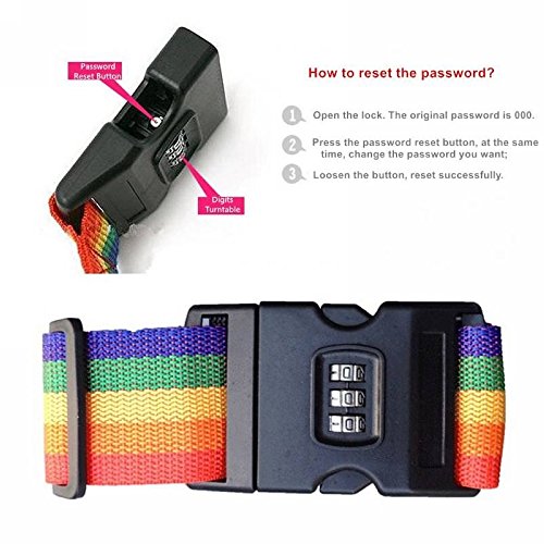 Studio : photoloving-amus Publisher : photoloving-amus Product Description Item Specific: Material: Polyester Color: Rainbow Length: 200cm/78.7" Special Design: Digit Coded Lock Buckle Adds More Safety to Your belongings. Bright Multi Color Belt Help You To Differentiate Your Luggage Easily, Save The Time, Keep The Travel Happy. How To Set: The original is 0-0-0, set your own combination 1.Press down the reset button and hold it until step 2 has been performed. 2.Turn the dials to your desired combination. 3. Now release reset button. And press the button again as a check. Now the setting is completed Product Description: This 3-digit keyless lock offer many possible number combinations. No keys provided for the locks,please remember the personal password or code you set. Great for diverse use, commuting, train rides,bus trips and travel abroad. You can reset and change the combination according to your need. The numbers are easy to read. Keep your personal possessions, especially important belongs such as tablets, phones,cash at safe condition. About Our Services: If you aren't completely satisfied, please feel free to contact us for solution. Package Including: 1 x Luggage Strap 0