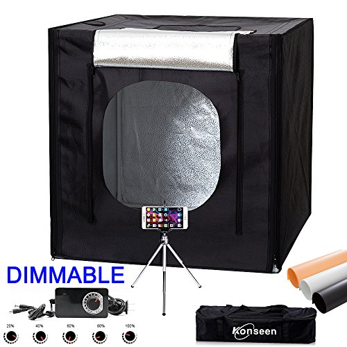 Studio : Konseen Publisher : Konseen Product Description Product Name:Dimmable LED Photo Lighting Studio Shooting Tent Kit 24x24 inch(60x60cm) Tabletop Photography Shoot Cube Box with Dimmer,Mini Tripod and 4 Color Backdrops