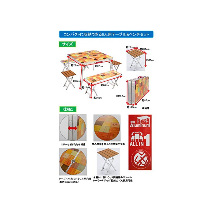 사이즈:테이블/약87×77×높이65cm,벤치/약84×27×높이36cm,stool/약27×23.5×높이36cm,수납 시/약87×10.5×높이39.5cm