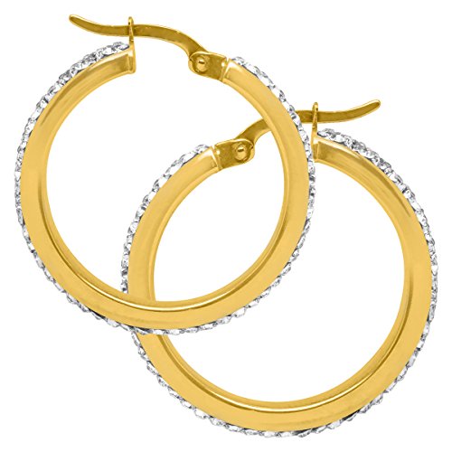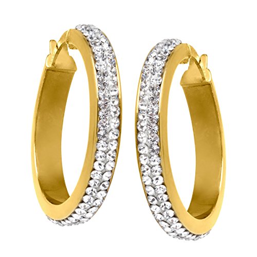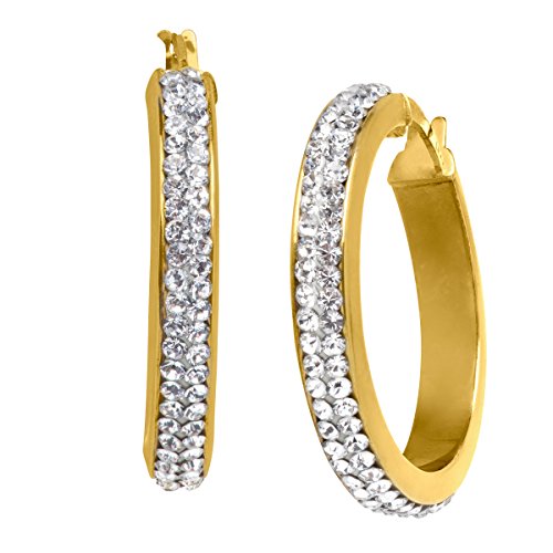 -. Title : Hoop Earrings with Swarovski Crystal in 14K Gold-Bonded Sterling Silver