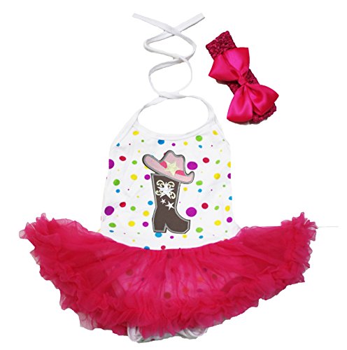 -. Binding : Apparel -. Brand : Petitebella -. Color : Hot Pink -. Department : baby-girls -. Feature : a 1-piece bodysuit, a headband / 3 buttons on the bottom / made by lightweight material / mainly cotton / bodysuit in cowgirl hat and boot design -. Model : JT1784 -. PackageQuantity : 1 -. ProductGroup : Apparel -. ProductTypeName : SHIRT -. Title : Cowgirl Dress Hat Boot White Halter Neck Bodysuit Hot Pink Tutu Clothing Nb-24m