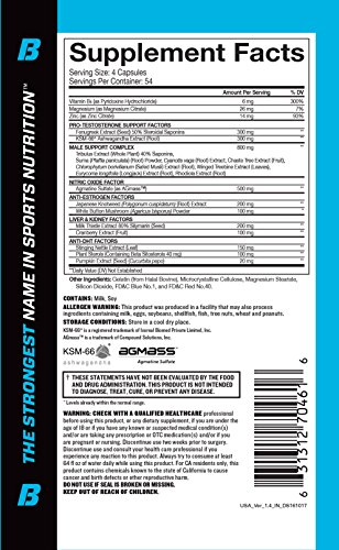 -. Title : Super Test by Beast Sports - Professional Strength, Natural Testosterone Booster Supplement with Nitric Oxide Support for Maximum Muscle Mass, Stamina, Strength, and Recovery, Bonus Size, 216 Capsules