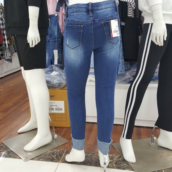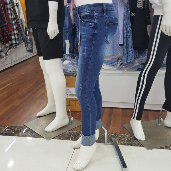 스키니 롤업 구제 데님 바지입니다.