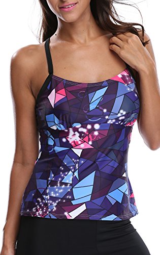 CharmLeaks Women Criss Cross Tankini Top Bandeau Swimwear for UV Protection Special Features: Shell:82% Nylon 18% Spandex, Lining:100% Polyester, Mesh:85% Nylon 15% Spandex. Well UV protection at UPF 50 . The Elastic fabric shape your body well. This Modest tankini top can match with any bottom you like. The Bandeau design makes you elegant and attractive, eye-catching. The Criss Cross back holds you well and give you a secure protection when you enjoy the Water Fun. Full coverage ensures Modesty and Tummy Control and easily to get in and pull out for enjoy summer water fun in new 2016. A preety Modest Adorable Tankini Tops for ladies swimming lovers at such a good price. Note: Item includes: 1 x One Piece Tankini Top. Hand wash cold water. Hang or Lay flat to dry. Color differences allowed for light effects. 0