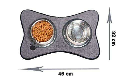Product Description Material :80%plyester 20%polyamid microfiber anti-spot on the back side .Place under your pet's food and water bowl to help protect your floor from splashes and spills Absorbs up to 4 times its weight in water and radiates moisture from point of origin to help keep floors clean and dry 0