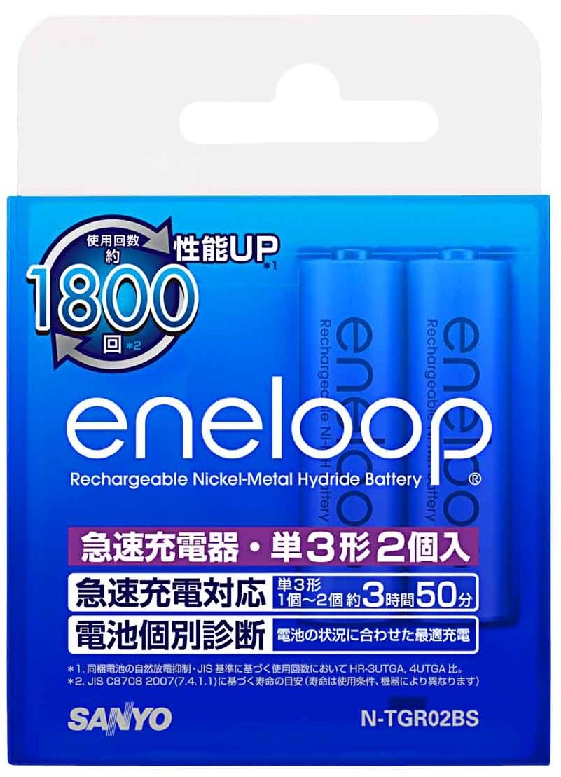eneloop Lightweight & Compact Battery Charger + 1 900mAh Ni-MH AA battery 2-Pack set | NC-TGR02 ( Japanese Import )