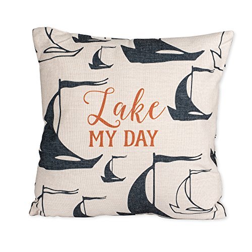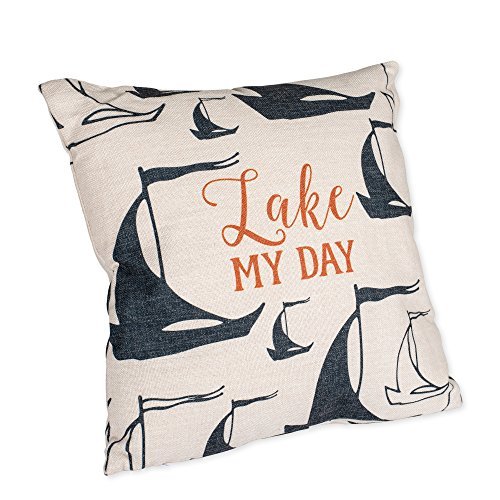 Mary Square Lake My Day Sailboat Silhouette 16 x 16 Linen Decorative Accent Throw Pillow