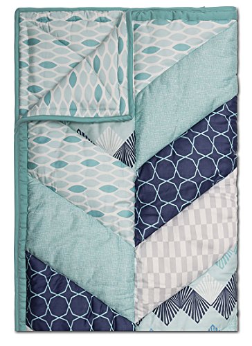 -. Feature : The Peanut Shell Mosaic Nursery Collection features a tailored contemporary design with a combination of unique graphic P.R.Ints using 100% cotton fabrics; 3 piece set includes: quilt, dust ruffle, and fitted sheet / Quilt, generously sized at 44 by 37 inches, is made of 100% cotton fabrics featuring a pieced herringbone quilting design with geometric and tile P.R.Ints in teal, grey, aqua, and marine blue; will find a multitude of uses in and out of the nursery / Dust ruffle, with a unique chevron design and decorative center pleat, is finished with a marine blue P.R.Int border and has a generous 16 inch drop / 100% cotton sateen fitted crib sheet fits a standard crib mattress that measures 28" x 52"; cute elephants add the perfect touch of whimsy / Machine wash and dry