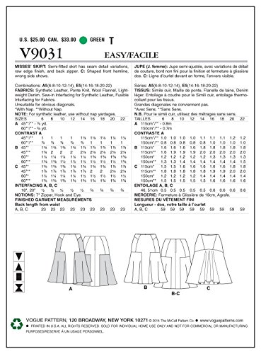 -. Title : Vogue Patterns V9031 Misses' Skirt Sewing Template, Size E5 (14-16-18-20-22)