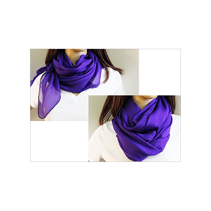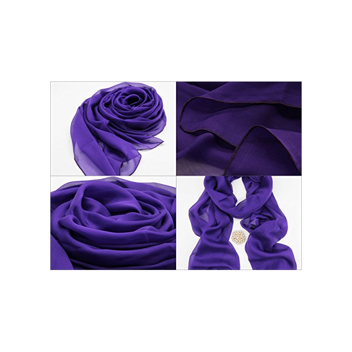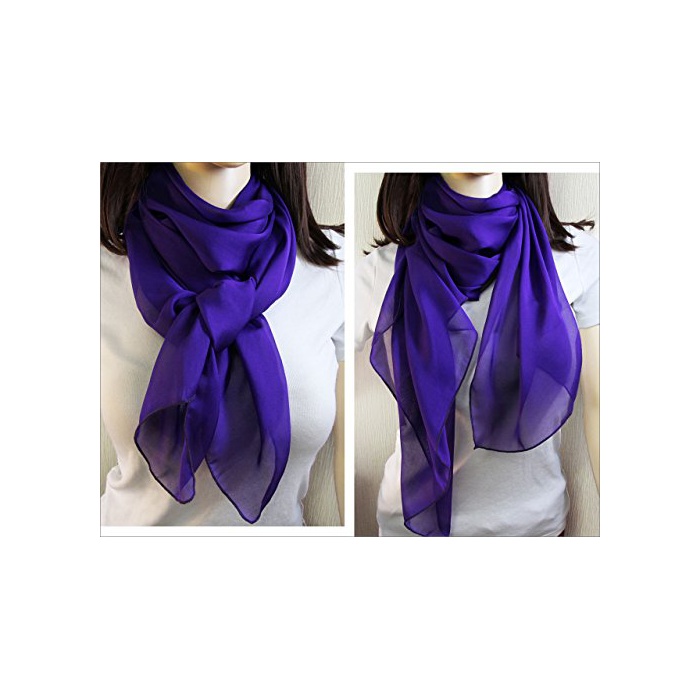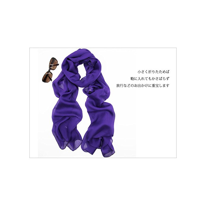 실크 100% 대형 스카프 스톨 【 딥 로얄 퍼플 】 포도 그레이프 팬지 인디고 보라색 퍼플 바이올렛 명주 UV 방한 시폰 천연 소재 195×65cm [Instyle Japan]