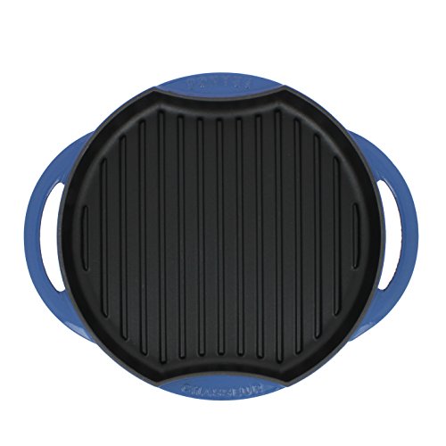 The Chasseur Round Cast Iron Grill provides all the flavor of an outdoor grill, with all the convenience of indoor cooking. This grill pan is constructed of thick cast iron to maintain its temperature during cooking, making it ideal for grilling anytime. Enameled cast iron cookware is valued for its versatility on all cooking surfaces (flame, oven, induction, electric, etc.), its even heating properties and exceptional browning capability as well as the ease with which it can be cleaned make Chasseur enameled cast the best choice for cookware.Feature