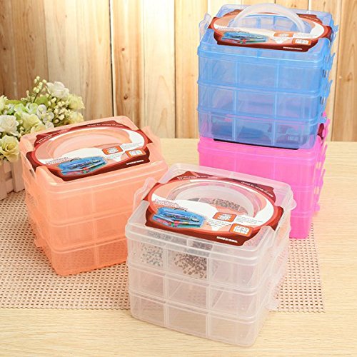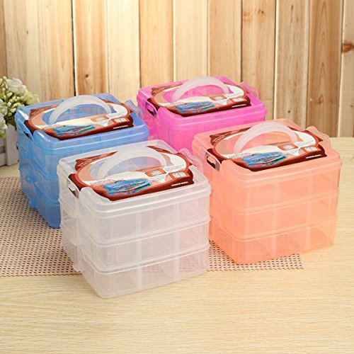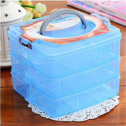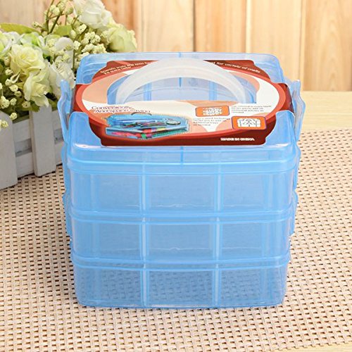 SENREAL 3 Layers Craft Accessories Plastic Craft Beads Jewelry Storage Box Rubber Bands Organizer Sewing Case Gadgets Container(Blue)