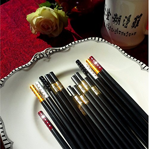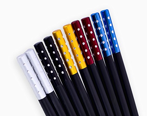 - HIGH QUALITY CHOPSTICKS, SURE TO PLEASE: A beautifully crafted luxury chopstick set for everyday use or why not take a little gift for the hostess? The black color sticks with pretty colored Metal Bands sparkle in the light and bring an understated bling to any special occasion Chinese, Japanese, Vietnamese or Korean dinner party table!