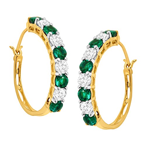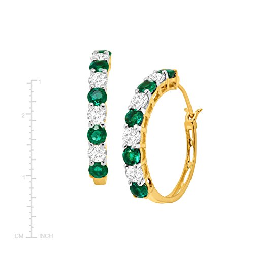These hoops pair effortlessly with your favorite neutrals! Round-cut created emerald, totaling 1 ct, adds a subdued pop of color when patterned with 1 1/8 ct round-cut created white sapphire, all in a setting of 10K gold. Pieces measure 7/8 by 1/8 inches.Feature