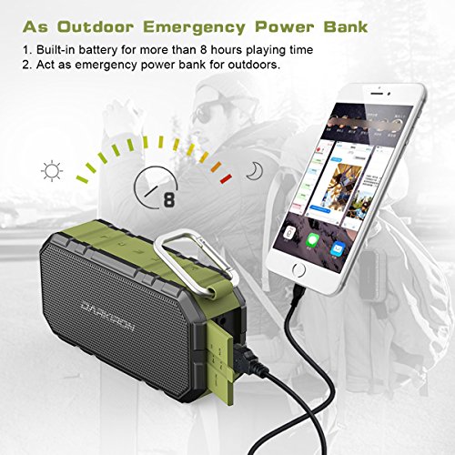 Gute Akkuleistung:Ausgestattet ist der Lautsprecher mit einem fest verbautem 2000mAh Akku, fur eine lange Verwendung. Ausserdem konnen andere Gerate uber einen USB Ausgang an der Ruckseite aufgeladen werden.