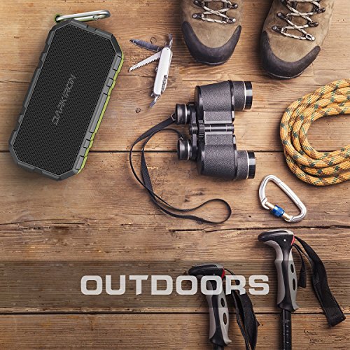 Outdoor - Laustprecher:Der Lautsprecher ist stossfest und besteht aus Metall. Farblich passend ist auch die Gummierung. Dabei wirkt der Lautsprecher sehr robust und gut geschutzt, dass er Wanderung, Kletterpartie und Kanufahrt ohne Probleme besteht.
