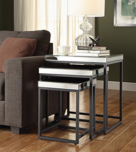 -. Title : OSP Designs Krystal 3-Piece Square Mirror Nesting Tables