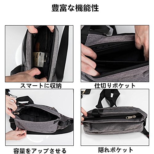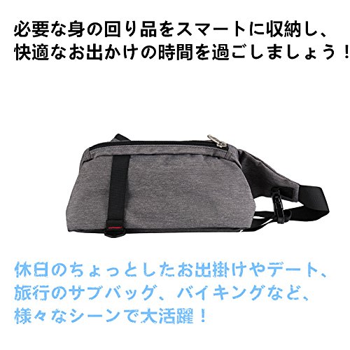 -. Feature : お洒落なデザイン:コンパクトで軽く、お洒落な人気ボディバッグ。男女問わず誰でも使いやすい。休日のちょっとしたお出掛けやデート、旅行のサブバッグ、バイキングなど、様々なシーンで大活躍! / 丁寧な縫製:高品質ナイロン素材を採用し、耐久性、耐荷性に優れています。体にフィットしやすい形状の設計で荷物が多くても快適に運ぶことができます。 / 豊富な機能性:財布、ティッシュ、タバコ、USB、鍵、カードなど、沢山の荷物をコンパクトに収納することが出来ます。メインポケットの中に仕切りポケットがあるので、小物の整理整頓に最適! / 使い勝手が良い:肩掛けしても斜めがけにしても左右どちらの肩にかけてもフィット感ができて、お好みの姿勢で快適にお使いいただけます。 / メイン素材:撥水性ナイロン サイズ:縦幅27cm×横幅15cm×マチ幅7cm